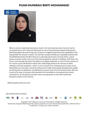 Over the years, Munirah Mohammad has been regularly featured in the media for her thought leadership and contributions to the real estate industry. From expert opinions in national publications to coverage of her speaking engagements both locally and abroad, this section highlights some of the key moments where her voice and insights have made headlines.