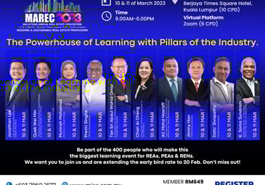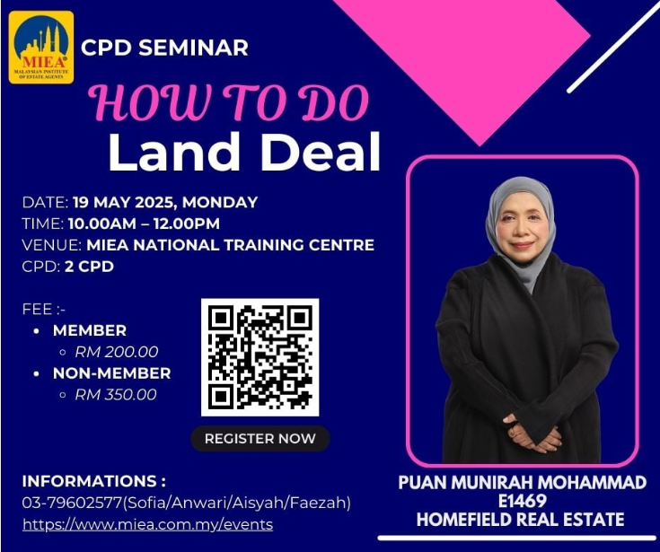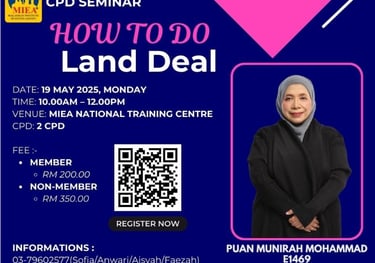 Known for her clarity, insight, and passion, Munirah has consistently inspired professionals and newcomers alike through her speaking engagements. Beyond the stage, she contributes actively to the profession’s development as an appointed examiner with BOVEA (Board of Valuers, Appraisers, Estate Agents and Property Managers), where she conducts interviews and assessments for aspiring estate agents.