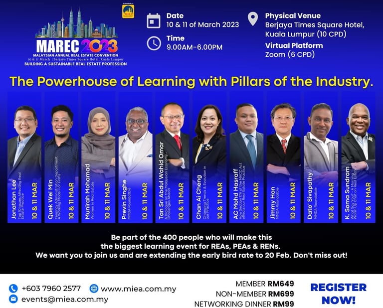With an outstanding 36 years of experience in real estate, Munirah Mohammad has built a reputation as a seasoned professional and respected industry voice. Her deep expertise has made her a regular speaker at both local and international platforms, including real estate forums, conventions, universities, developer events, and industry associations.